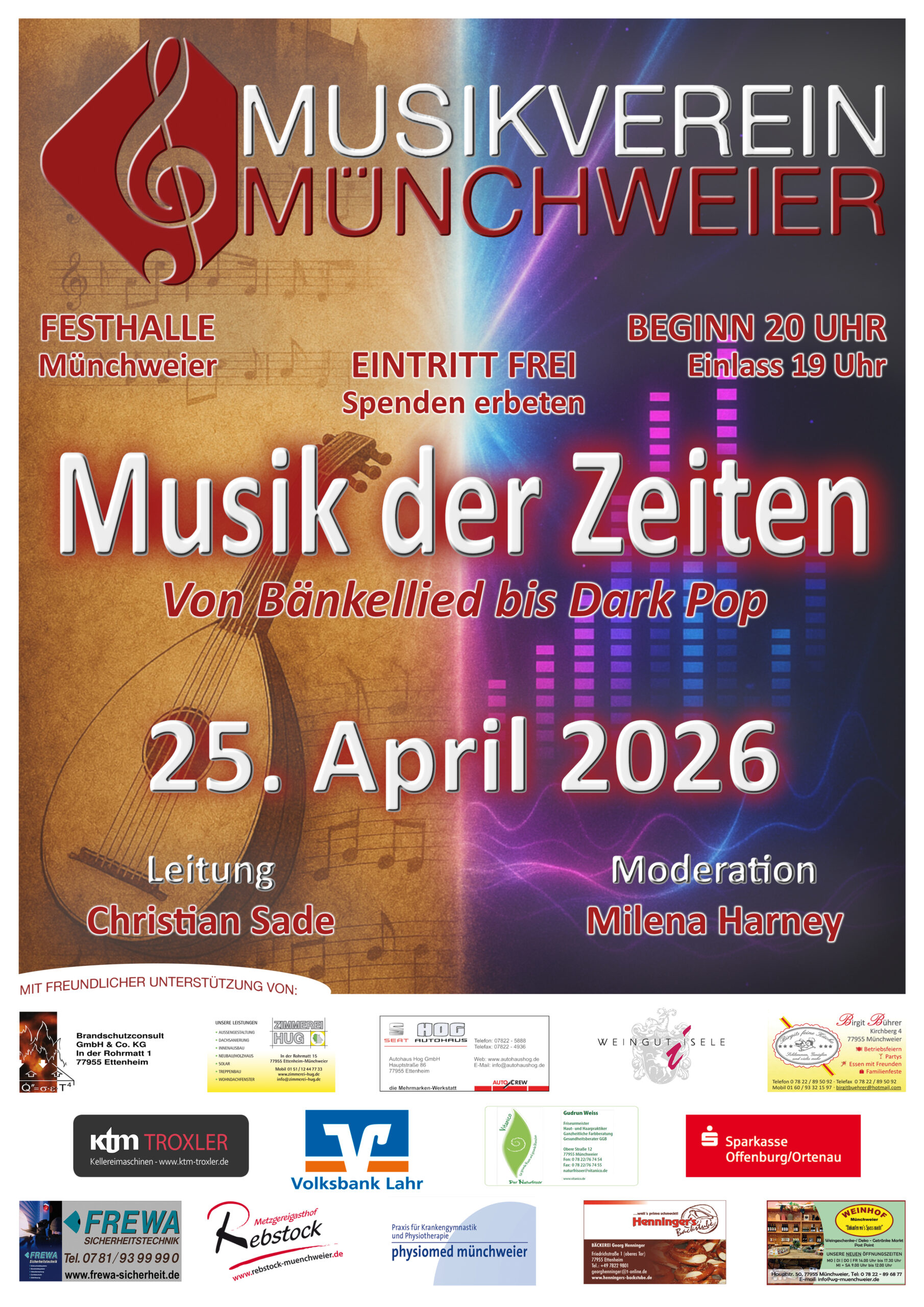 Musik verbindet – und genau das leben wir im Musikverein Münchweier seit Generationen. Mit Leidenschaft, Gemeinschaftssinn und musikalischem Können gestalten wir das kulturelle Leben in unserem schönen Ort aktiv mit. Ob bei Konzerten, Festen oder kirchlichen Anlässen – wir freuen uns, unsere Begeisterung für die Blasmusik mit Ihnen zu teilen. Schön, dass Sie da sind!